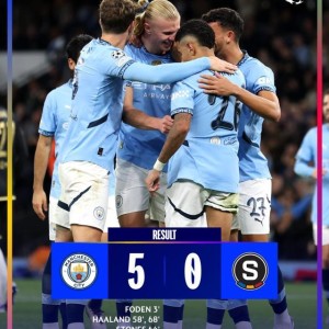 体坛周报全媒体原创 曼城5比0布拉格斯巴达 3'福登,58'哈兰德,64'斯通斯,68'哈兰德,88'马特乌斯·努内...